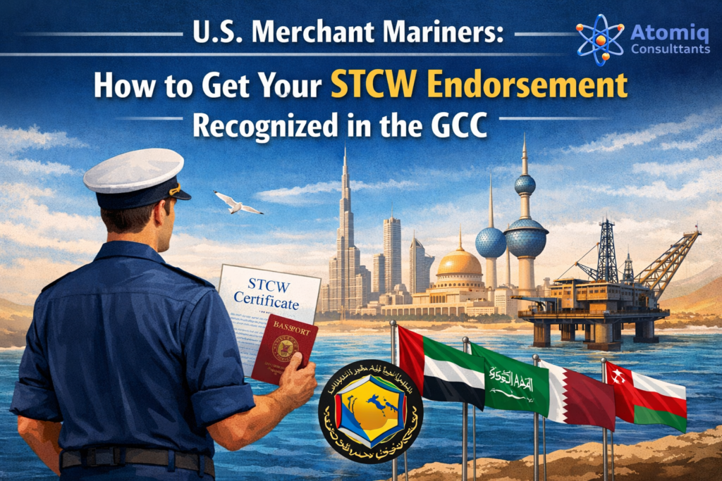 U.S. merchant mariners can have their STCW endorsements recognized in Gulf Cooperation Council (GCC) countries by working under a GCC‑accepted flag, ensuring their U.S. Coast Guard STCW complies with the STCW Convention, and using a documentation specialist (like a Dubai‑based maritime consultancy) to manage recognition, endorsements, and local processing.